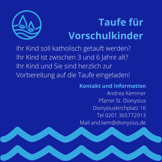 Bitte nehmen Sie für die Anmeldung zur Taufe Kontakt zum Pfarrbüro auf. Öffnungszeiten und Kontaktdaten finden Sie hier...